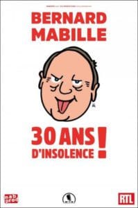 Dans son livre Les pensées insolentes, sorti depuis septembre 2017, Bernard Mabille est encore plus libre ! Il nous raconte avec humour Les Grosses têtes sur RTL, la revue de presse sur Paris première, ses one man show… en bref, un concentré de bonne humeur pour écraser la morosité ambiante !