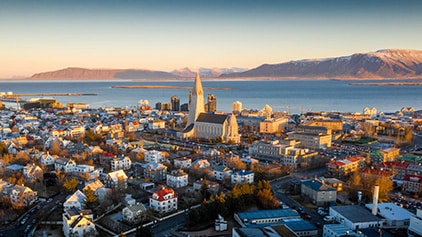 Vous arriverez à Reykjavik après quelques heures de vol pour découvrir la capitale de ce petit pays nordique. Comme souvent sous ses latitudes, les villes sont aérées mais les cafés et les restaurants sont cosy et accueillants. Vous ne manquerez pas le centre culturel Harpa qui semble posé sur l’eau du port et vous irez voir la spectaculaire église de Hallgrimskirkja qui domine le centre-ville de sa haute stature.