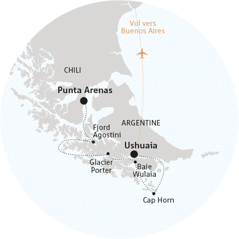 Partez à la découverte des confins du monde lors d’une expédition de cinq jours en Patagonie. Depuis Ushuaïa, embarquez à bord d’un navire d’expédition et laissez-vous envoûter par la beauté sauvage de ces terres australes. Du Cap Horn mythique aux glaciers majestueux, en passant par la baie de Wulaia et le détroit de Magellan, chaque escale vous réserve des paysages à couper le souffle. Observez les colonies de manchots de l’île Magdalena et imprégnez-vous de l’atmosphère unique de la Terre de Feu.