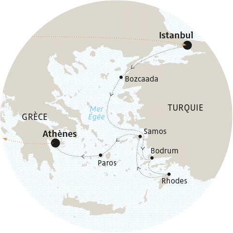 Plongez dans l’histoire à Rhodes, île des chevaliers et de l’acropole de Lindos. Détendez-vous à Samos, île fertile aux vignobles renommés et aux vestiges antiques. Terminez votre voyage à Paros, havre de paix aux maisons blanches et aux plages paradisiaques. Votre périple se conclut à Athènes, berceau de la civilisation occidentale.
