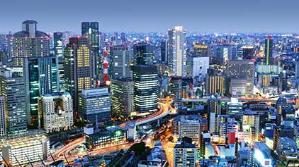 Au fond d’une immense baie, Osaka, le plus grand port du Japon, est parfois surnommée « la ville aux pieds dans l’eau ». Symbole du miracle économique japonais de l’après-guerre, elle est devenue une métropole trépidante à l’animation presque méridionale comparée à la laborieuse Tokyo. Osaka était la porte d’entrée de nombreux produits alimentaires et la plaque tournante du commerce du riz. C’est donc naturellement qu’elle est devenue la capitale gastronomique du pays. En 1994, l’ouverture du grand aéroport du Kansai, sur une ile artificielle, a confirmé la dimension internationale de la ville, gagnée lors de l’Exposition universelle de 1970. Grâce à son port très actif, Osaka demeure un des plus grands pôles d’échanges en Asie. Des tours d’Umeda aux étincelantes enseignes lumineuses du Dotonbori, la capitale économique du Kansai est en constante ébullition. Elle réserve de nombreuses surprises.