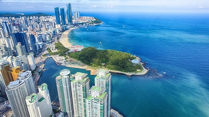 Avec environ quatre millions d’habitants, Busan est la seconde métropole de Corée du Sud, après Séoul. Ramifié autour de ses baies, c’est le port le plus important du pays et le neuvième du monde. Pas étonnant que la ville soit si ouverte aux influences étrangères. Près du port, au pied des gratte-ciel, on découvre des rues animées. C’est ici que se trouve le marché aux poissons de Jagalchi Plus d’une centaine de commerçants vous attendent devant des bassines remplies de fruits de mer et de poissons de toutes sortes : courbines jaunes (maigre), daurades, mulets, abalones, poulpes, limaces de mer, ascidies (sortes d’éponges pouvant être consommées crues ou cuites), etc. Une occasion unique de découvrir des espèces qui nous sont peu familières. Mais la ville possède aussi des plages bien exposées, des sentiers de balade sur les collines ou le long de la côte, comme celui qui conduit, plus à l’est au pittoresque temple Haedong Yonggungsa, construit en bord de mer contre un éperon rocheux.