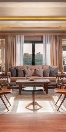 Toutes luxueuses et climatisées, aménagées dans un style moderne, elles possèdent toute d’un balcon privé et d’un coin salon pour les suites Présidentielles.