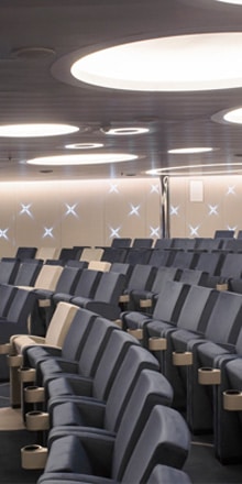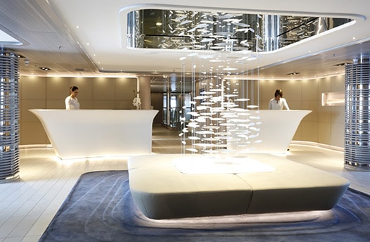 Il présente des lignes extérieures et intérieures tout en sobriété et raffinement, renforcées par sa taille intimiste, 132 cabines et suites seulement.