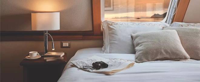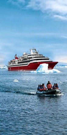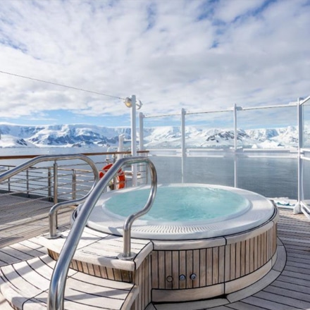 Sa petite taille et sa coque homologuée pour la glace lui permettent de se faufiler là où les autres navires ne vont pas. À bord, une flottille de 10 zodiacs vous attend pour vous conduire au plus près des sites, accompagnés d’un naturaliste. Rare navire à être ceinturé par une coursive extérieure continue, Exploris One offre des points de vue à 360° sur son environnement.
