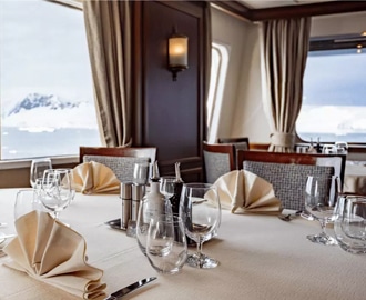 Des cabines confortables et un service impeccable (presqu’un membre d’équipage pour un passager). À bord, pas de grand théâtre mais une salle de conférence où vous retrouverez vos rendez-vous habituels avec notre conférencier et de nombreuses autres interventions passionnantes de naturalistes français, glaciologues, spécialistes du climat de la faune arctique ou de la vie marine.