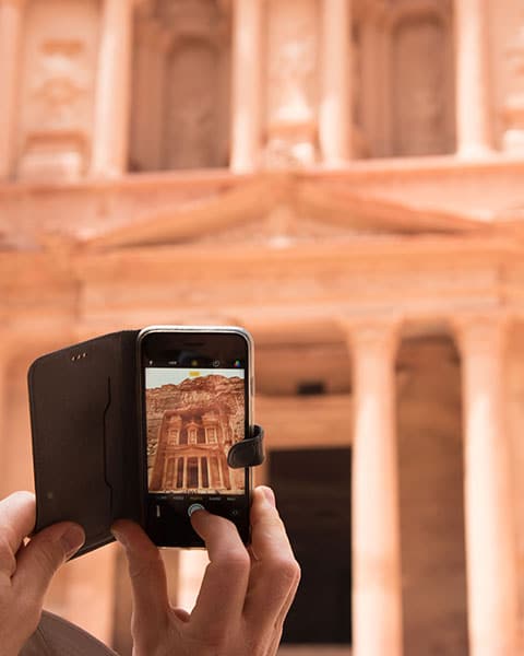 Taillée dans la roche en 300 avant J.-C., majestueuse, Pétra rappelle un temps où les caravanes chargées d’épices, d’encens et autres produits de valeur, joignaient l’Orient à l’Occident.