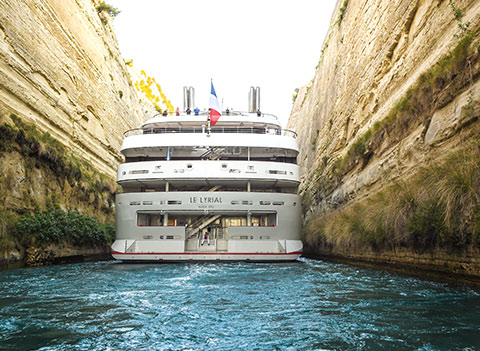 La navigation dans le canal de Corinthe demande une minutie de chaque instant. Large de 25 mètres, il rend l’accès aux gros navires impossible et reste une voie agréable par laquelle passer.