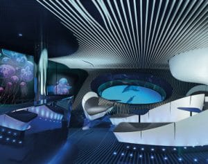Le Ponant a travaillé avec l’architecte de la mer Jacques Rougerie pour réaliser un salon sous-marin destiné aux quatre nouveaux Explorers. Magique !